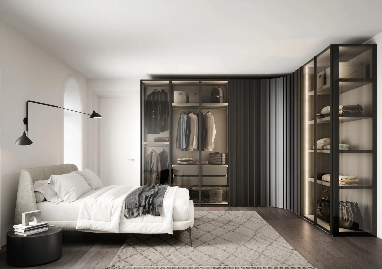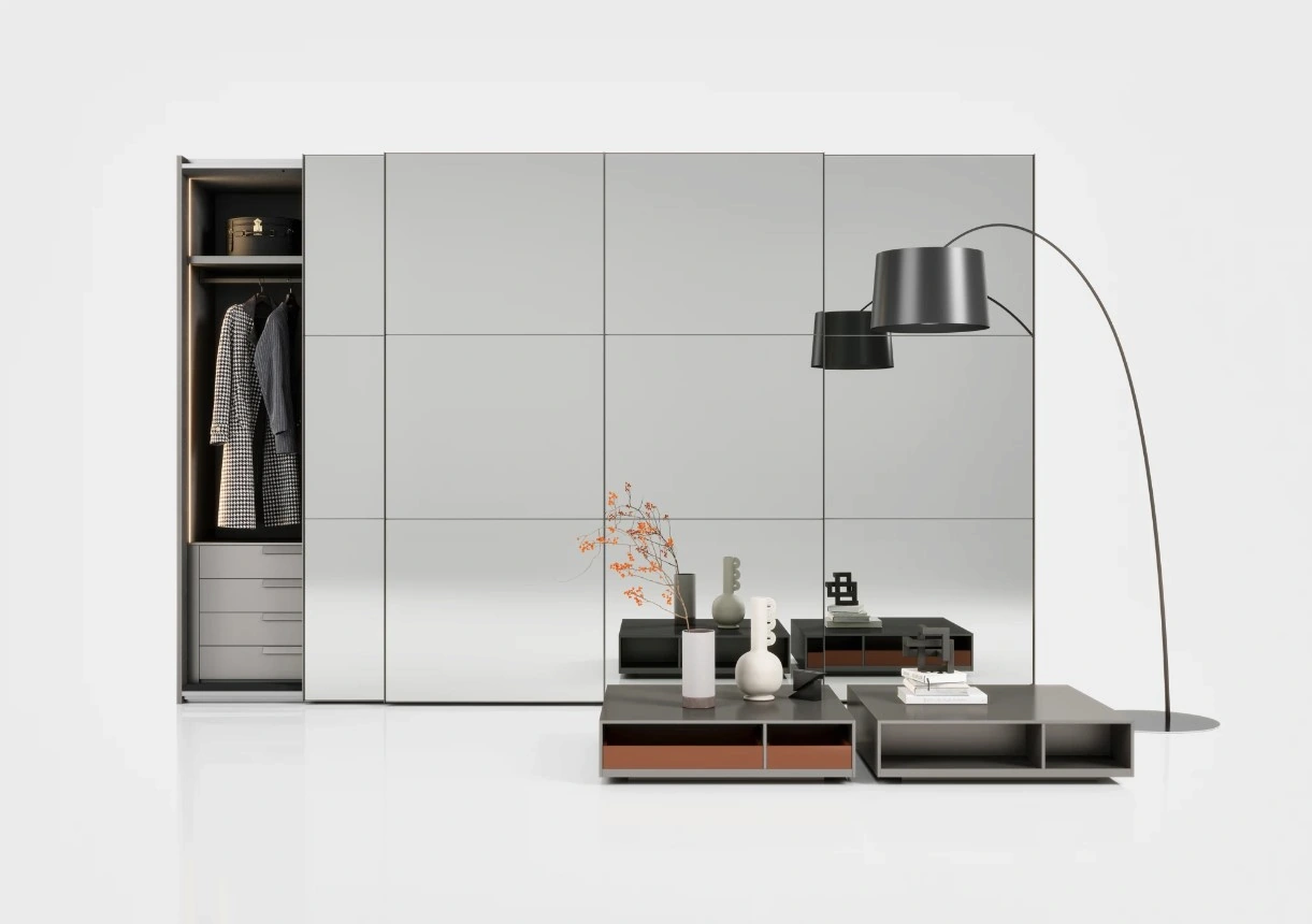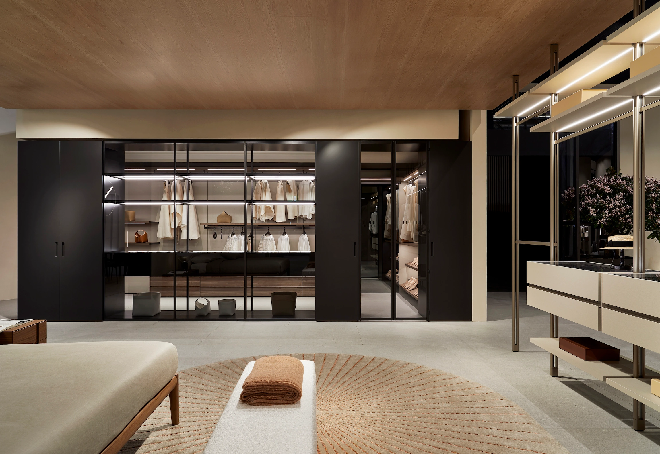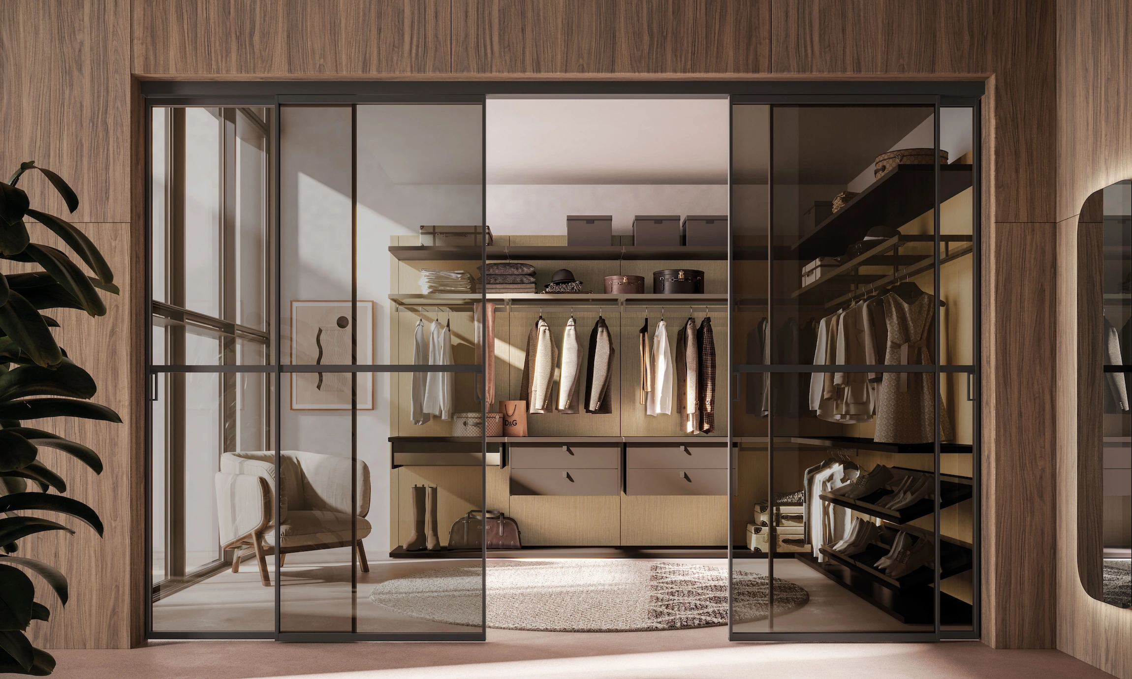 I letti possono essere completati con contenitore, ideale per chi desidera ottimizzare lo spazio. Gli armadi, grazie alle molte configurazioni interne, permettono di organizzare al meglio capi e accessori, con cassettiere, ripiani, tubi appendiabiti e illuminazione interna. Le finiture spaziano da materiali materici a tonalità più neutre, così da creare un ambiente rilassante e coerente.
