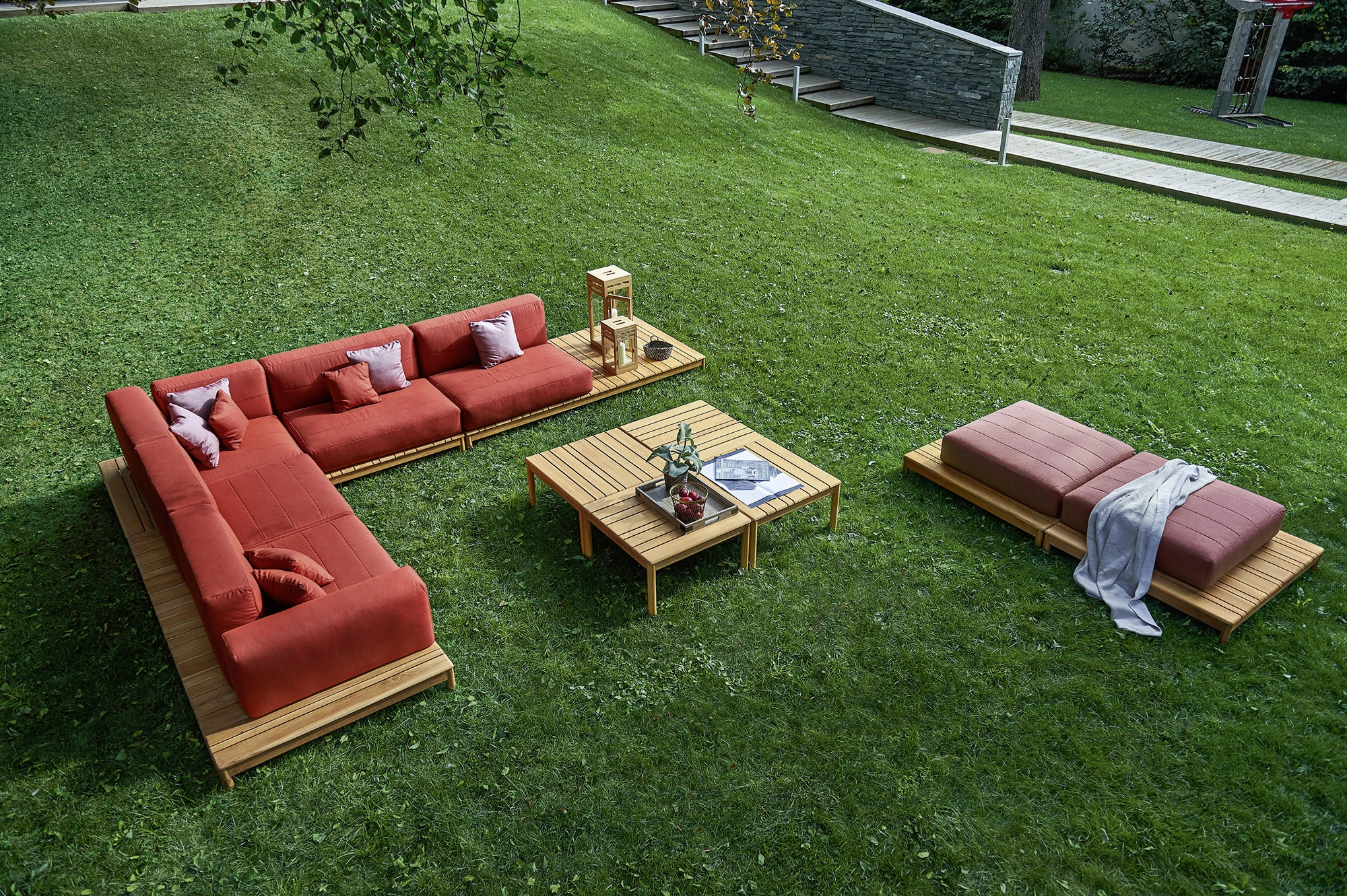 Le collezioni includono elementi modulari che permettono di configurare lo spazio in modo personalizzato, sia per aree ampie sia per terrazzi più ridotti. L’ampia scelta di finiture e tessuti consente di creare un outdoor elegante, accogliente e coerente con lo stile degli interni.