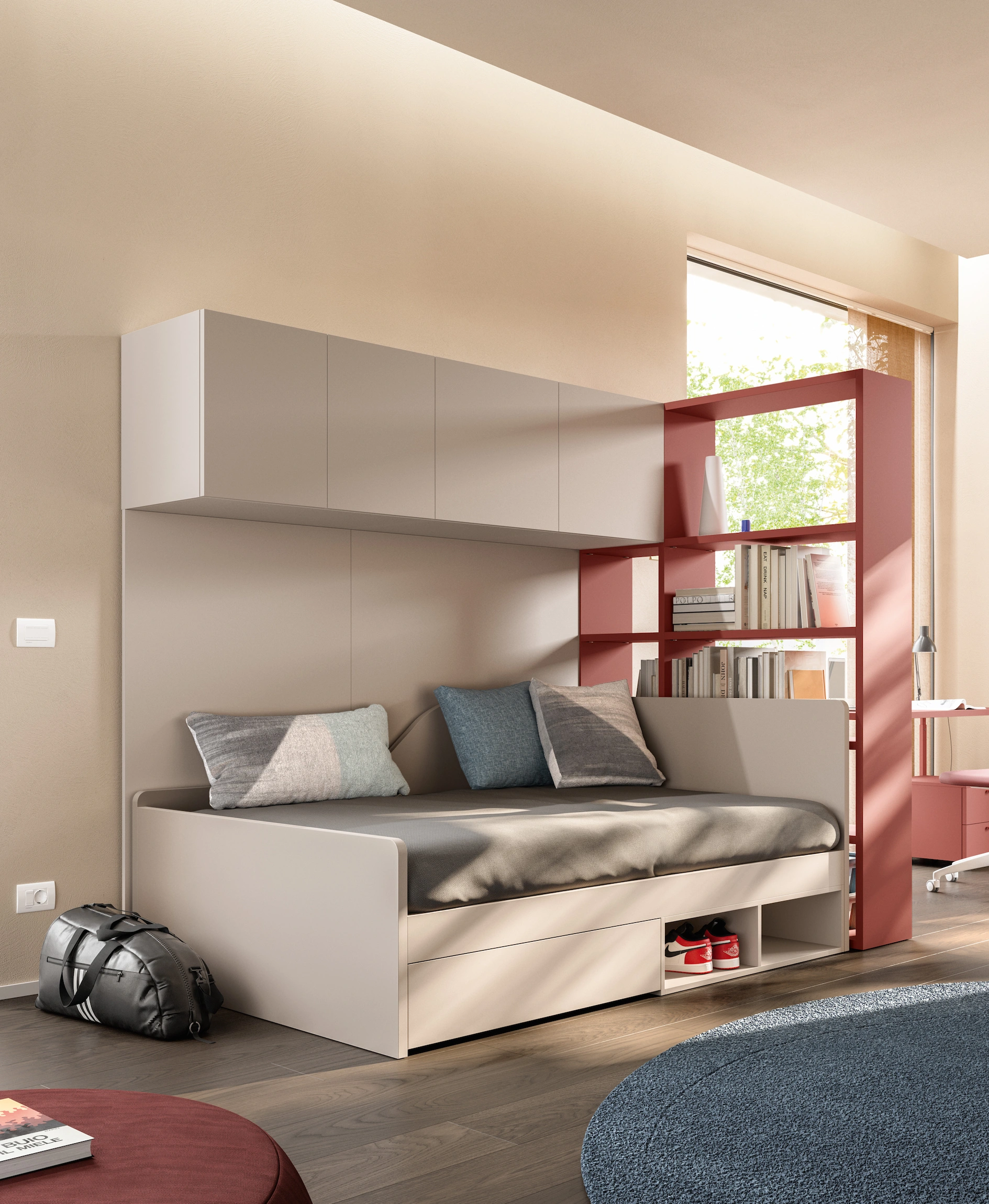 La progettazione su misura ci consente di trasformare ogni cameretta in un ambiente equilibrato e funzionale, dove ogni elemento ha un ruolo preciso e ogni spazio è sfruttato al meglio.